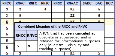 Hover your mouse over the values for definitions and explanations.Note that In particular, for RNCC and RNVC, the Tool Tip tells you what the combined meaning of the RNCC and RNVC means.